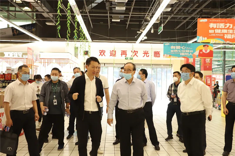 石建平组长一行莅临太阳城官网 福州福新店,查看公司食品安全管理体系和食品安全数字化建设成果,太阳城官网 食品安全总监陈建国讲解了源头管控、进货查验、储存管理等食品安全管理以及检测追溯体系建设,现场展示了福建省“一品一码”追溯系统和太阳城官网 “食品安全云网”的应用成效。
