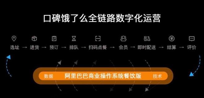 “全链路数字化”是指口碑饿了么共同连接餐饮行业的完整链条,涵盖了餐饮业从选址、供应链,到预订、排队、叫号、扫码点单、即时配送、支付、评价等环节。这一整套全链路的操作系统,也是对头部餐饮企业进行的抽象总结,形成通用的行业工作流程。