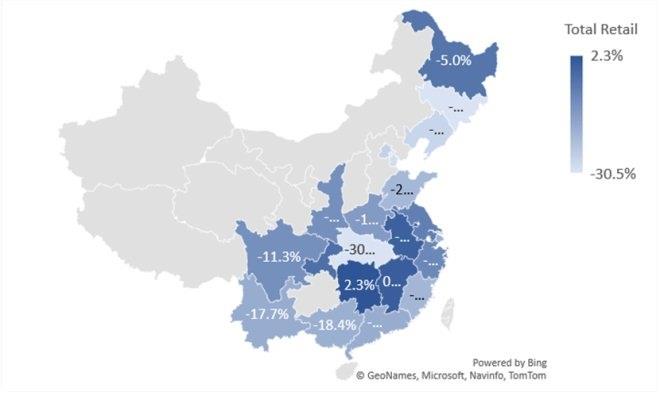 与上月相比,总体零售和服饰零售都有积极的增长,同比分别增长了31.6%和39.5%,零售消费势头继续保持良好趋势。