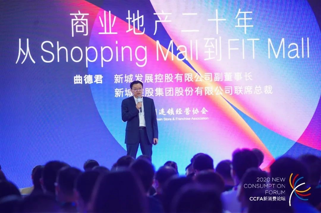 新城发展控股有限公司副董事长、新城控股集团股份有限公司联席总裁曲德君发表了题为《商业地产20年,从Shopping Mall到FIT Mall》的演讲。曲德君首先回顾了过去20年,商业地产的环境变化。