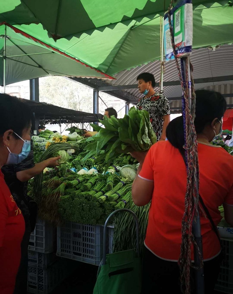 双峪市场的大门不是很显眼,但是往里走就是另一番天地。这里按照产品种类进行了销售区域划分,有水果大厅、蔬菜大厅、肉类大厅、服装大厅,周围一些小门店都是日用百货店,分为杂货区、调料区、主食区,还有服装加工、配钥匙等便民服务。蔬菜大厅最为热闹,商贩们的叫卖声此起彼伏,人们拉着各种小推车在菜摊前挑选商品,时不时地还能碰到街坊邻居打个招呼。这里的烟火气最为浓烈。