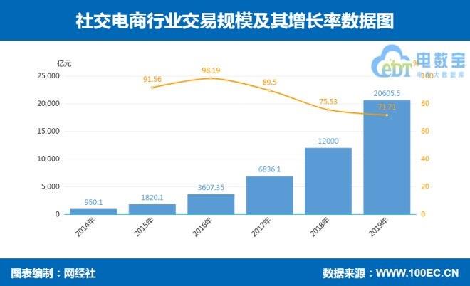 去年我国社交电商交易规模为20605.5亿 增速下滑