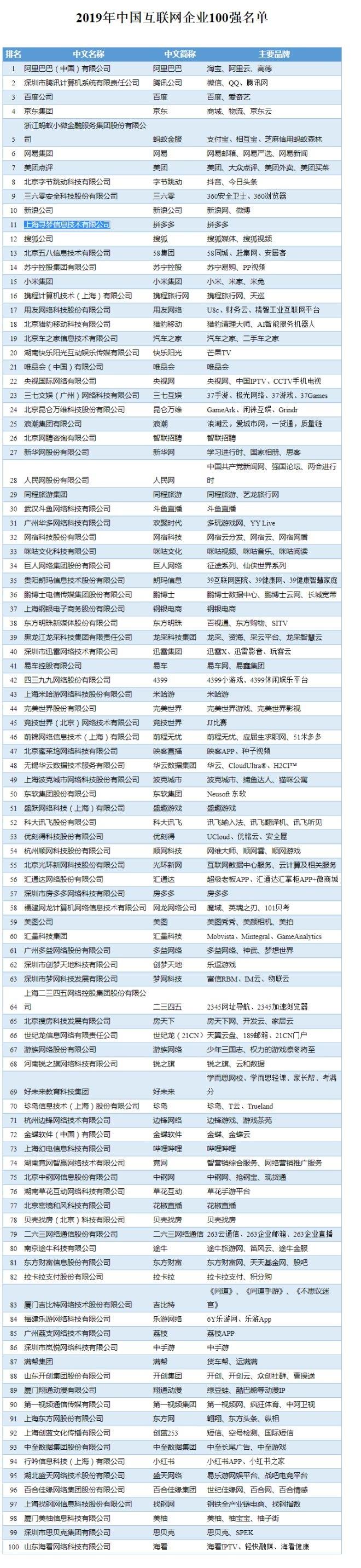 近日,工业和信息化部信息中心发布了2019年中国互联网企业100强榜单,阿里巴巴(中国)有限公司、深圳市腾讯计算机系统有限责任公司、百度公司、京东集团、浙江蚂蚁小微金融服务集团股份有限公司、网易集团、美团点评、北京字节跳动科技有限公司、三六零... ...