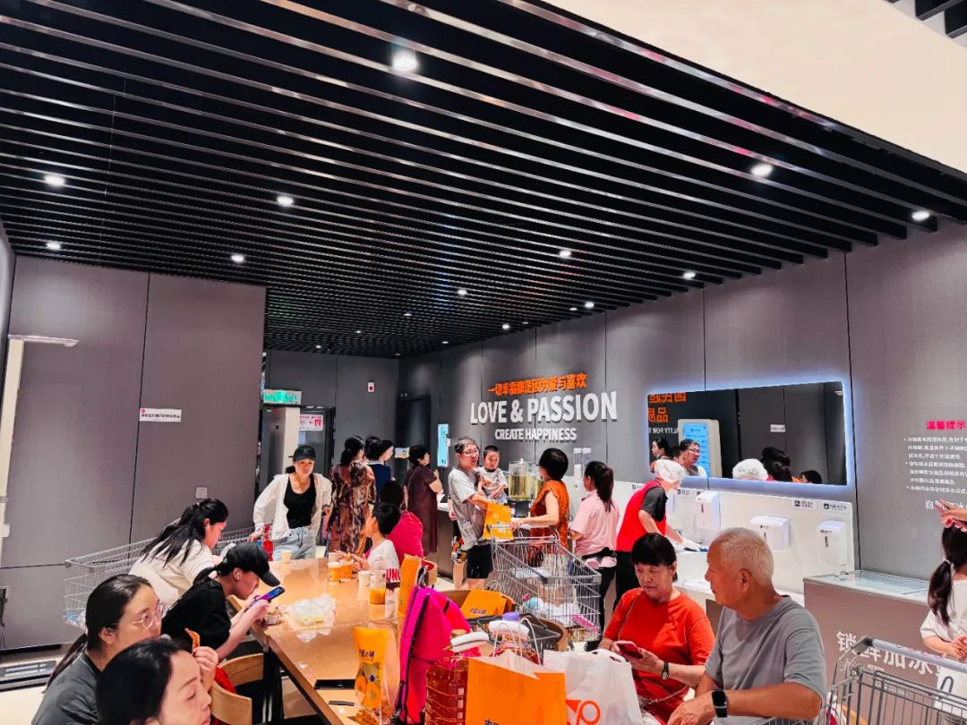 便民关怀:各店标配顾客休息区,集成身高体重秤、血压计、直饮水、微波炉;宠物安置区解决携宠购物难题;各个门店更提供免费菊花茶、应急药箱及1小时免费充电宝,成为高温下的“清凉驿站”。