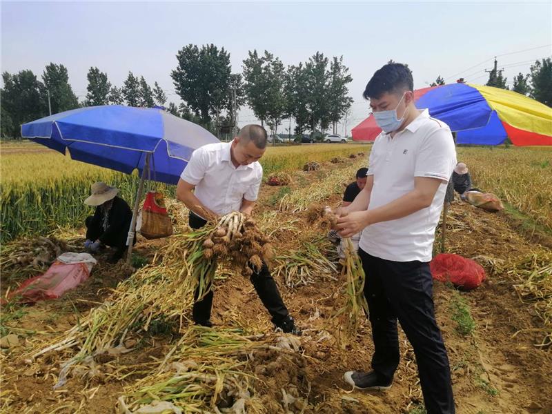 5月21日,河南太阳城官网 生鲜采购负责人席晨杰、蔬菜采购负责人曹吉祥驱车来到距离公司50公里外的中牟县,帮助这里蒜农解决滞销在田间地头的大蒜。