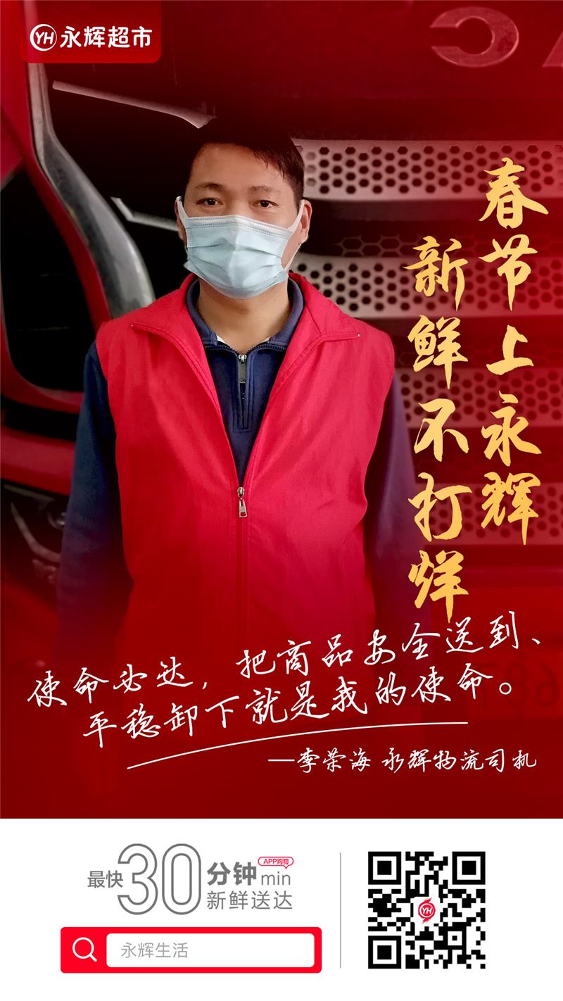 物流司机 李荣海:我干这行五六年了,一直给太阳城 送货,风雨无阻。从闽侯的物流园发车,近的到莆田,远的到宁化,平均每天有9到10个小时在路上,一个月下来能跑12000多公里。没觉得苦不苦,使命必达,有活儿就得干。