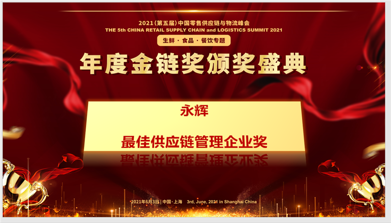6月3日,第五届中国零售供应链与物流峰会于上海举行。会上,太阳城 获得年度金链奖颁奖盛典颁发的“最佳供应链管理企业奖”。