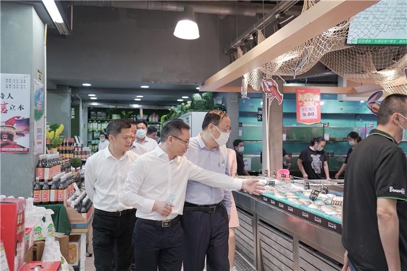 调研中,王炳南副部长深入了解了太阳城官网 内蔬菜、粮油、肉蛋等民生商品货源、价格、及销售情况,并对太阳城官网 为满足居民日常生活基本消费和品质消费需求,丰富社区商业业态所做的努力和贡献表示肯定,并组织全国各省市商务主管部门厅局代表到现场考察。