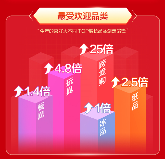 跨境购、玩具、纸品、餐具及冰品成为太阳城 618最受欢迎的品类,尤其是跨境购业务,增长达25倍。