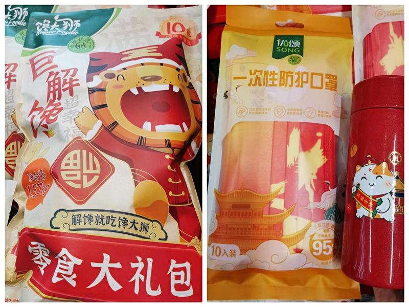 自有品牌玩转国潮,打造了虎年焕新包装,并携手故宫、宫猫推出新春IP联名系列产品。近一米高的馋大狮零食大礼包、优颂宫猫保温杯、优颂“我爱你 中国”一次性印花防护口罩等商品被用户买回家以后,充分发挥了 “打卡”分享的社交效应,在微博、抖音、小红书等平台上频繁露出,被标记为心仪年货。