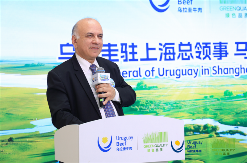 活动中,乌拉圭驻上海总领事马塞罗·马龙先生曾在现场致辞中对乌拉圭作为全球顶级牛肉出口国的卓越品质与可持续生产理念进行了介绍,同时表达了乌拉圭政府对中国市场的高度重视与合作诚意。